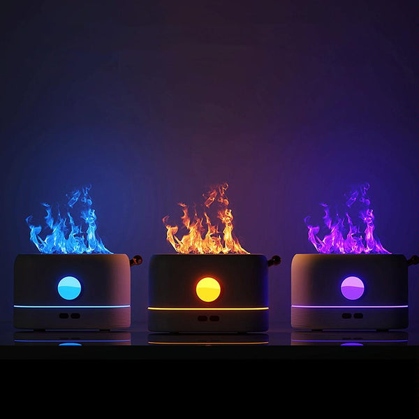 JF801 Desktop Simulation Flame Aroma Diffuser Humidifier, Color: 3 Color Light-Green