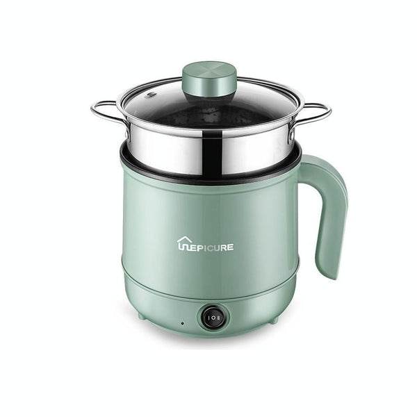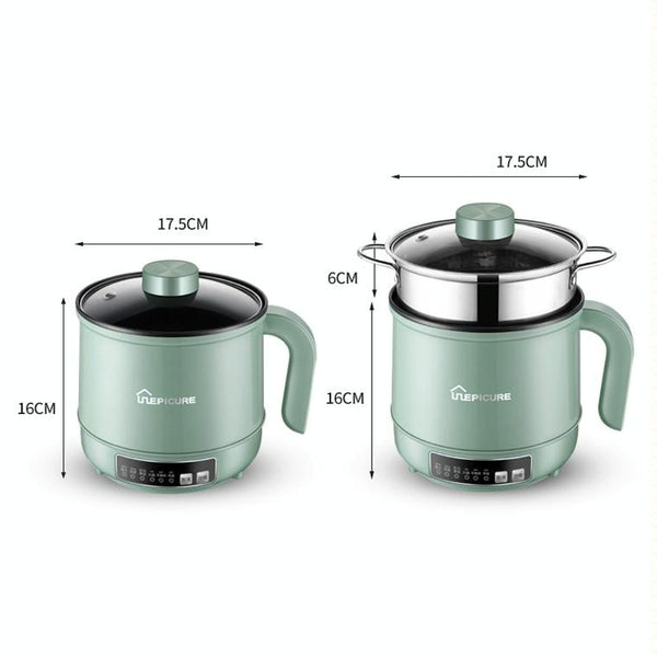 Multi-Function Electric-Cooker Mini Dormitory Student Cooking Rice Stir Frying Non-Stick Pot, 110V US Plug, Colour: Green Manual with Steaming Grid(1.7L)