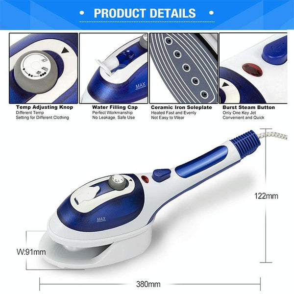 1. Handheld portable clothes irons fabric steamer provides a powerful and stable steam, removing wrinkles from your garments,The iron steam brush also deeply penetrates the fabric to kill most common germs and bacteria without the use of harsh chemicals.
