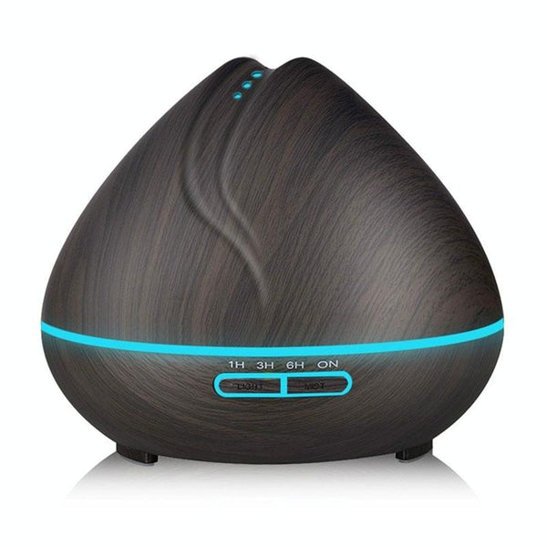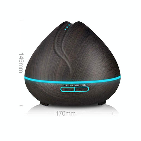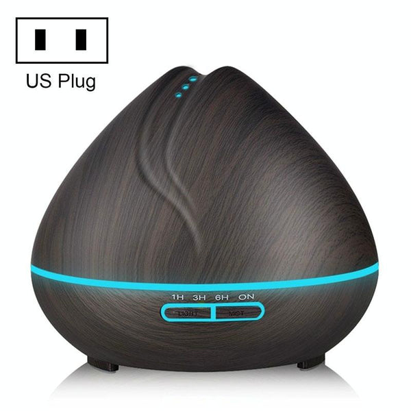 Peach Shape Wood Grain Remote Control Ultrasonic Humidifier Aromatherapy Machine Automatic Alcohol Sprayer with LED Lights, Capacity: 400mL, US Plug (Dark Wood Color)