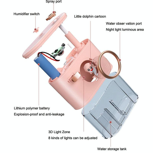 Q30 Desktop Mini Hydrating USB Dolphin Humidifier, Style: Plug-in Version (Snow White)