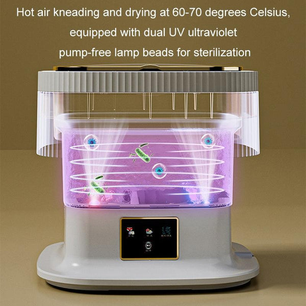 6. Hot air kneading and drying at 60-70 degrees Celsius, equipped with dual UV ultraviolet pump-free lamp beads for sterilization