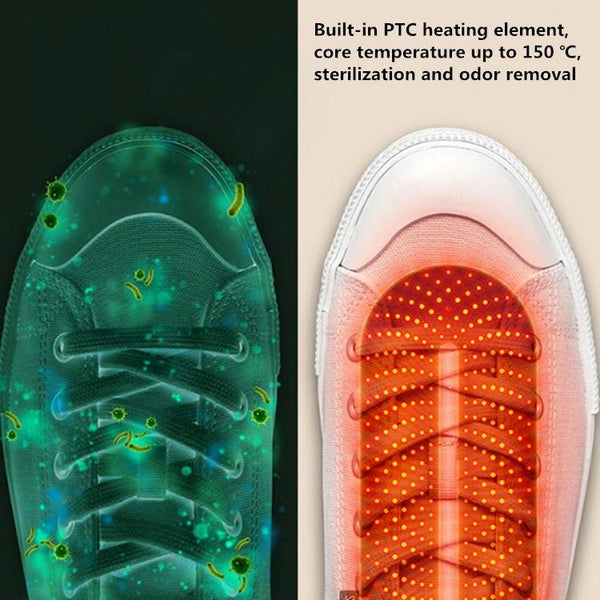 1. Antibacterial and dehumidifying: PTC heating element, constant temperature of 70 degrees Celsius throughout the work, keeping shoes fresh and dry