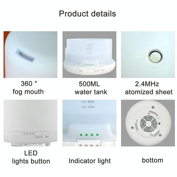 Ultrasonic Aroma Diffuser with Colorful LED Lights (US Plug)(White)