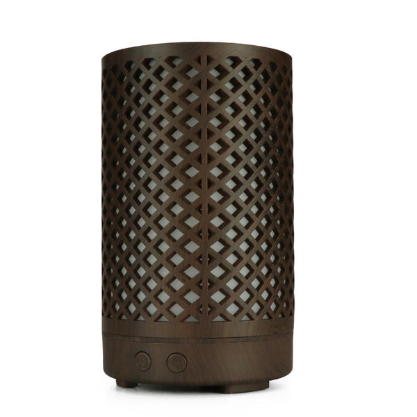 USB 200ml Hollow-out Forest Pattern Wooden Essential Oil Aromatherapy Machine Ultrasonic Humidifier Automatic Alcohol Sprayer(Dark Brown-1)