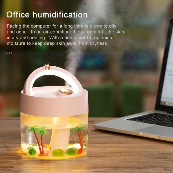USB Charging Air Humidifier Heavy Fog Sprayer Household Desk Lamp Aromatherapy Diffuser Air Purifier(Pink)
