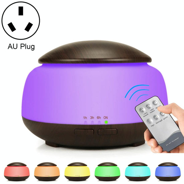 Wood Grain Humidifier Air Purifier Ultrasonic Atomization Household Aromatherapy Machine with Colorful LED Light Automatic Alcohol Sprayer, Plug Specification:AU Plug(Dark Brown)