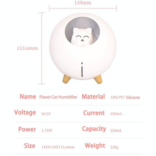 WT-TX5 USB Direct Insert Version Humidifier Mini Planet Cat Desktop Purifier(White)