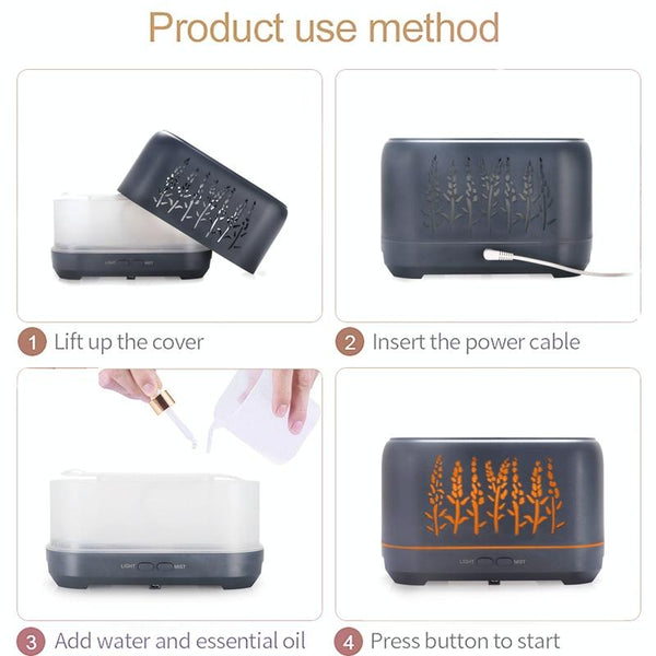 YX-1690 Wood Grain Aroma Diffuser Hollow Flame Humidifier(White)