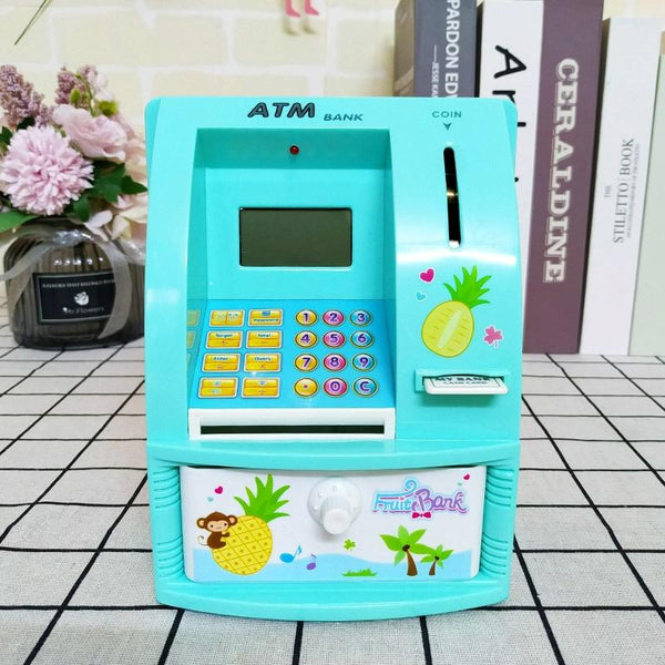 13 x 12 x 17cm Automatic Teller Machine Coin Saving Jar Childrens Mini Safe Deposit Box(Blue)