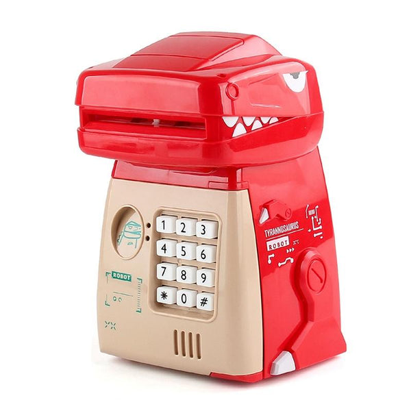 16.5 x 12 x 20.5cm Kids Cartoon Dinosaur Password Coin Bank Automatic Rolling Coin Bank Toys(Red)