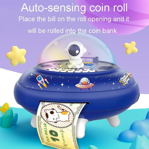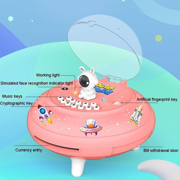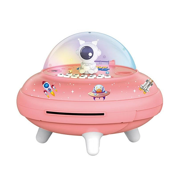 19.6 x 13.7 x 19.6cm UFO Flying Saucer Money Bank Toys Childrens Astronaut Intelligent Simulation Savings Jar(Pink Female Aircraft)
