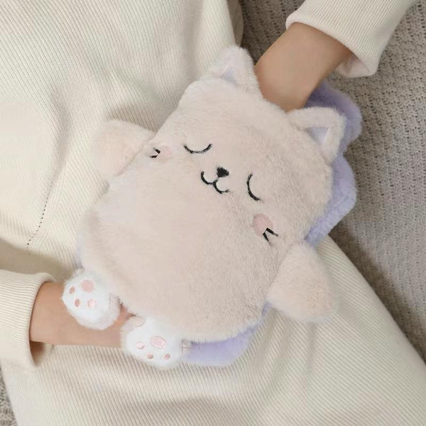 1L Hot Water Bag Dual Hands Plush Cute Hand Warmer, Style: Naughty Cat