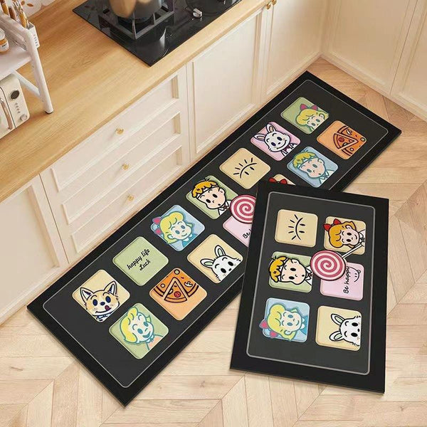 40 x 60cm+40 x 120cm 2pcs / Set Household Kitchen Oil-Absorbing Cartoon Pad Bathroom Non-Slip Quick-Drying Mat(Candy World-Black)