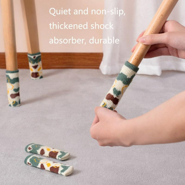 4pcs / Set Knitted Wool Silicone Silent Non-Slip Chair Foot Cover(Green Smiley)