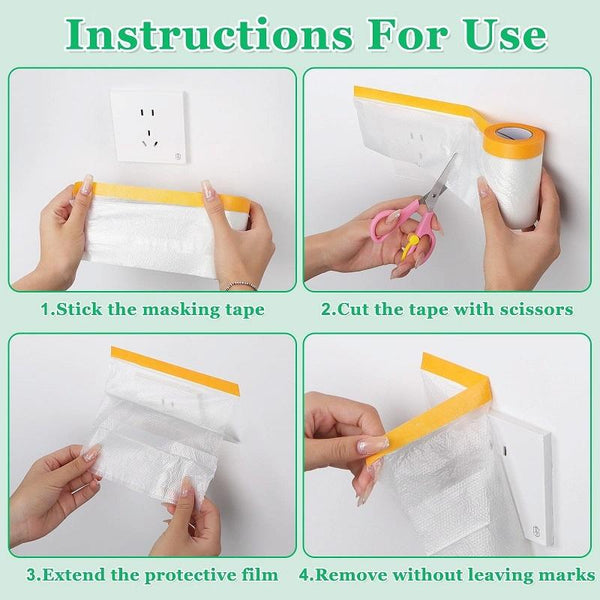 4. Different lengths of car masking tape can be cut, the plastic tape is on one side of the plastic sheet, making it easy to use, after fixing the position of the protective film, it will slowly cover the plastic film on the object to protect your furniture