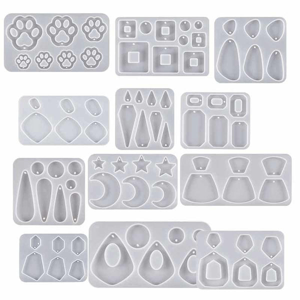 5pcs DIY Crystal Epoxy Earrings Silicone Mold Pendant Jewelry Mold, Spec: Four-edged