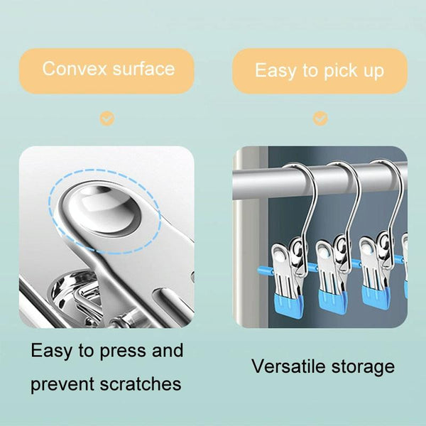 5pcs /Pack Stainless Steel Flat Clip With Hook Anti-Scratch Catch Laundry Drying Holder(Pink)
