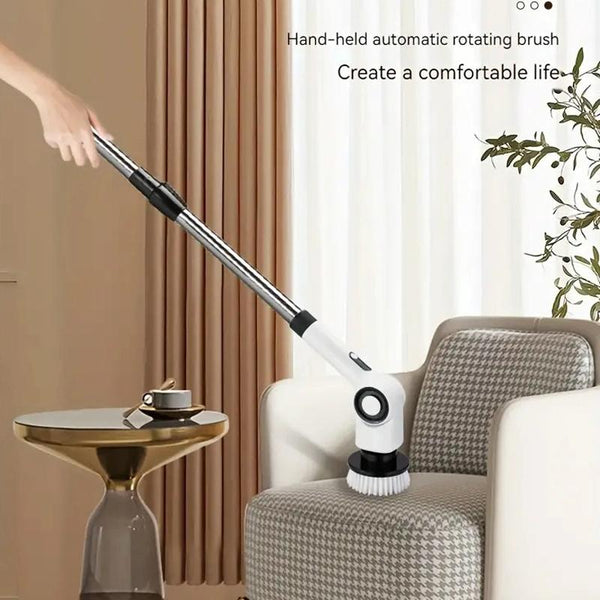 1. The cordless electric cleaning brush with a 2-section telescopic rod that can reach a length of 1m/23.6 inch, which can easily handle high or low cleaning.