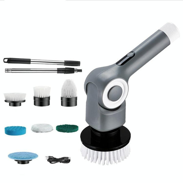 7 In 1 Electric Spin Scrubber Rechargeable Waterproof Floor Clean Bush with 23.6 Inch Adjustable Handle(Grey)