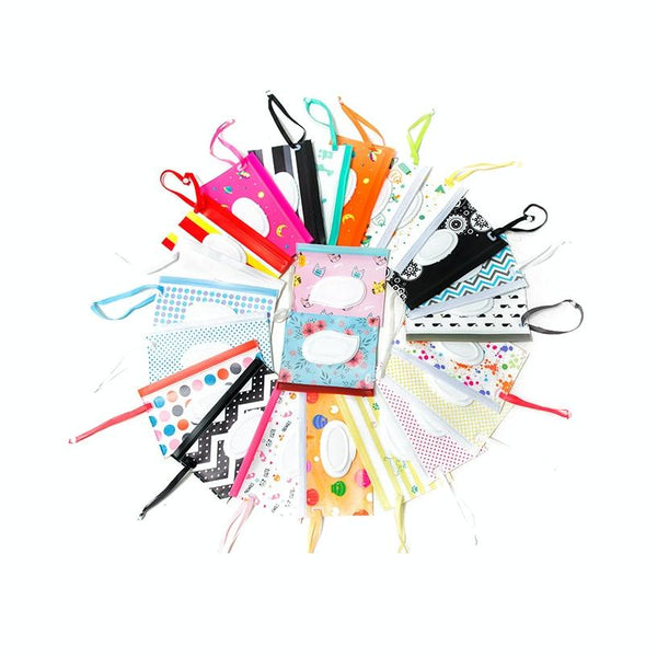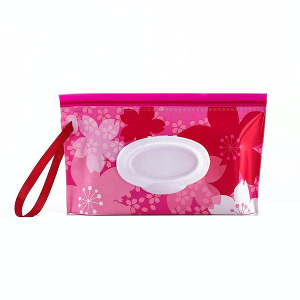 Baby EVA Wet Wipes Bag Portable Flip Removable Sanitary Wet Wipes Bag(Red Flower)