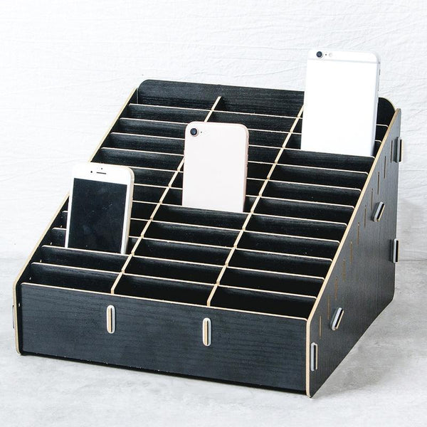 D-86 Office Conference Classroom Mobile Phone Storage Box, Style: 36 Grids (Black Oak)