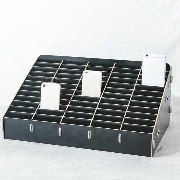 D-86 Office Conference Classroom Mobile Phone Storage Box, Style: 60 Grids (Black Oak)