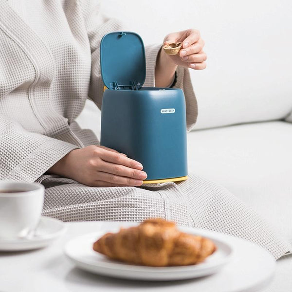 Desktop Trash Can Office Dress Makeup Table Living Room Home Mini Storage Box(Deep Blue)