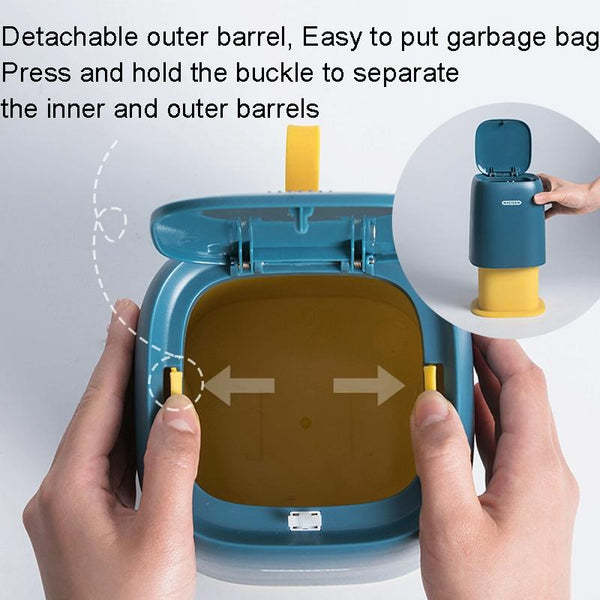 3. The outer barrel is detachable, which is convenient for putting garbage bags. Press the buckle to separate the inner and outer barrels.