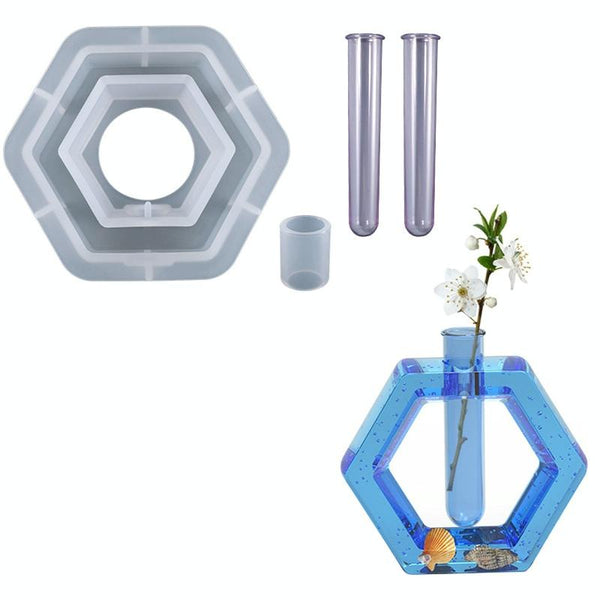 DIY Crystal Epoxy Test Tube Cultivation Vase Silicone Mould, Spec: Hexagon+2Pcs Light Purple