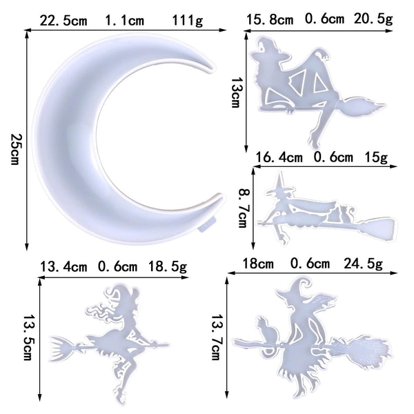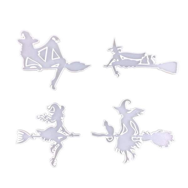 DIY Halloween Crystal Drop Plastic Mold Moon Witch Decoration Key Pendant Silicone Mold(7409-7412 White)