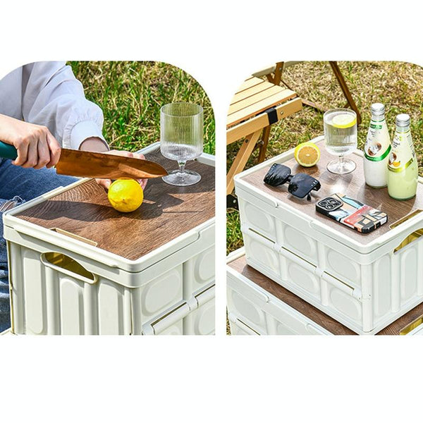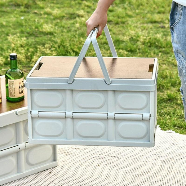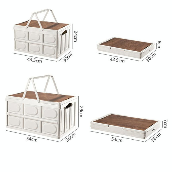 Foldable Outdoor Camping Storage Case Car Storage Box Organizer With Wooden Lid Small White