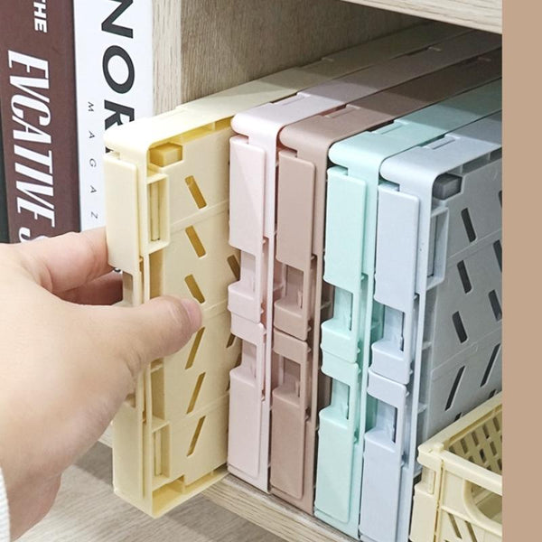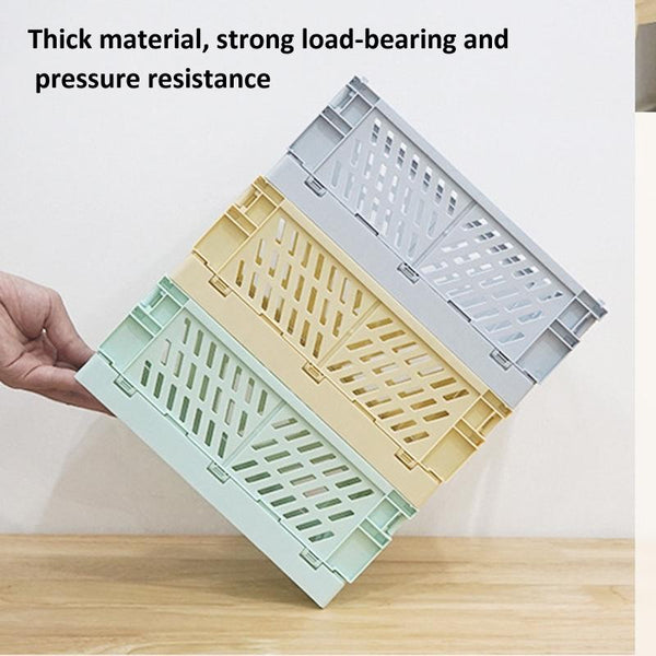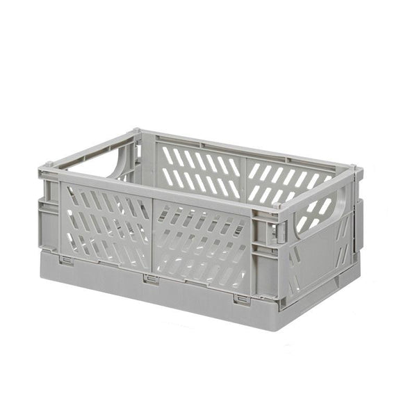 Folding Stackable Storage Basket Plastic Hollow Home Office Organizer Container Large Light Gray
