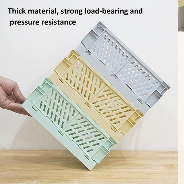 Folding Stackable Storage Basket Plastic Hollow Home Office Organizer Container Small Yellow