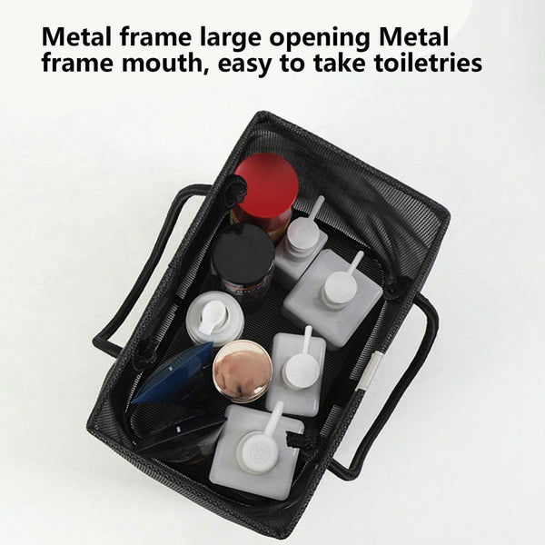 Mesh Toiletry Bag Basket Drainable Bath Bag Foldable Large Open Tote Bag Short Black