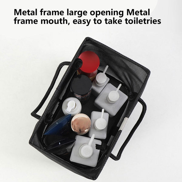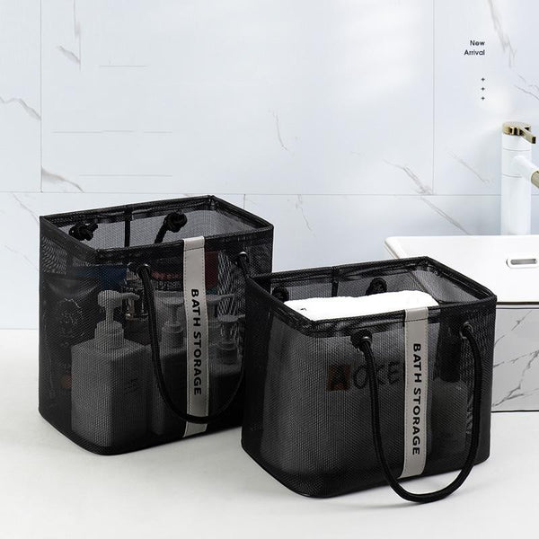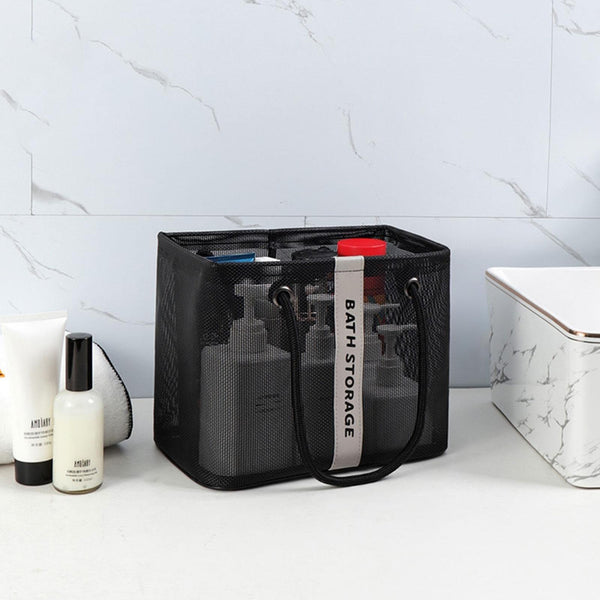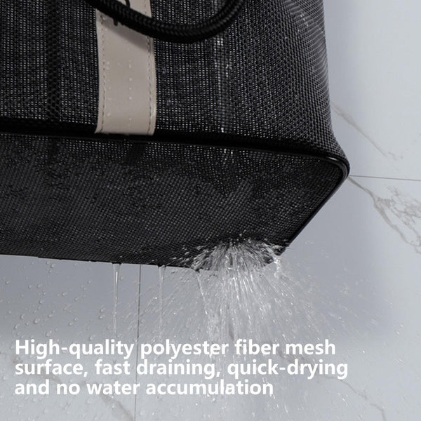 Mesh Toiletry Bag Basket Drainable Bath Bag Foldable Large Open Tote Bag Short Gray