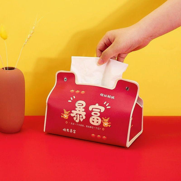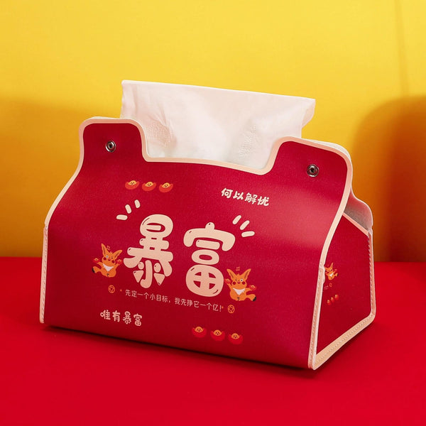 New Year Cute Tissue Box Waterproof Tissue Box Dormitory Car Carrying Living Room Universal Tissue Box, Style: Wealthy