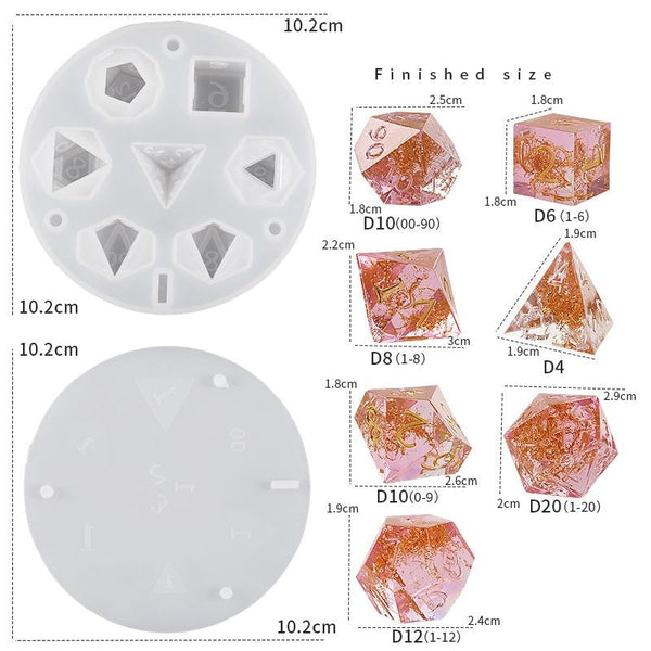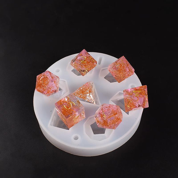 Silicone Dice Resin Molds with 7 Standard Polyhedral Stereoscopic Dice Cavities