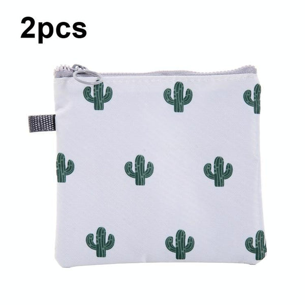 SN-031 2pcs Waterproof Zipper Sanitary Napkin Storage Bag Coin Card Bag(Cactus)
