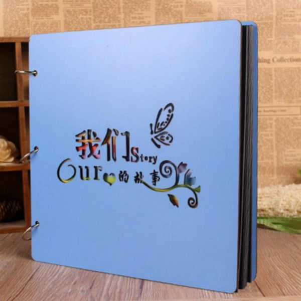 Wooden Cover Baby Growth Commemorative Album Creative Manual Paste Album Book(Blue Our Story)