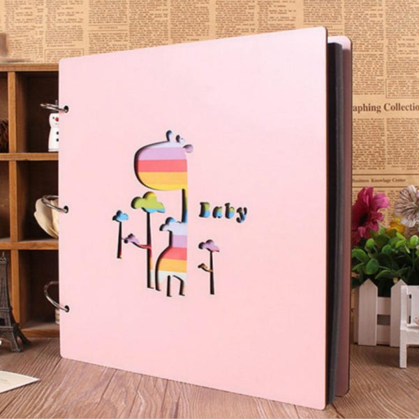Wooden Cover Baby Growth Commemorative Album Creative Manual Paste Album Book(Pink Giraffe)