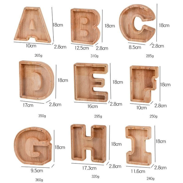 Wooden English Alphabet Piggy Bank Transparent Acrylic Piggy Bank(H)