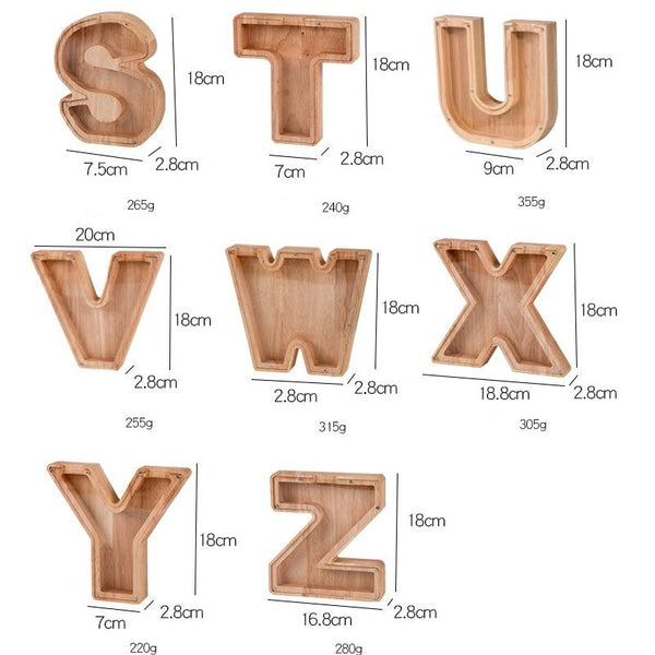 Wooden English Alphabet Piggy Bank Transparent Acrylic Piggy Bank(V)