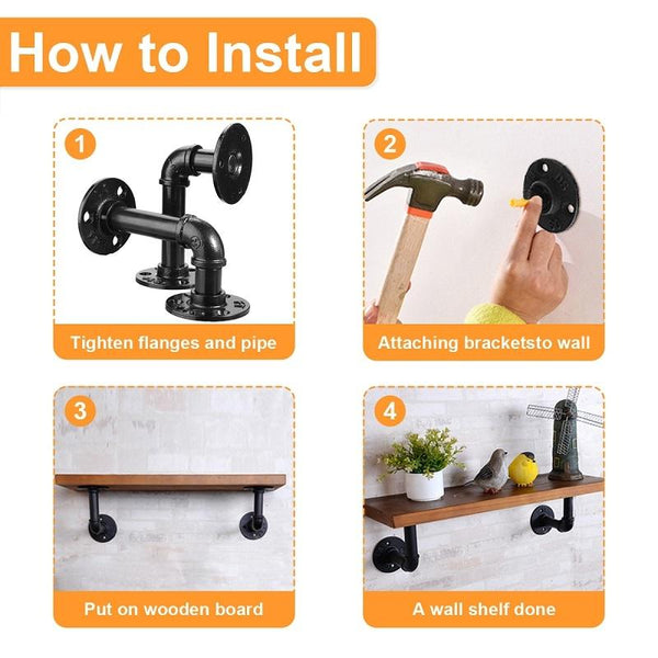 Wrought Iron Hanging Potted Plant Wall Shelf Water Pipe Shelf 12inch