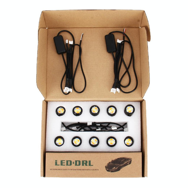 10 PCS 20W 4 LEDs SMD 5630 Daytime Running Light Turn Light Eagle Eye Light, DC 12V, Cable Length: 90cm(White Light + Yellow Light)