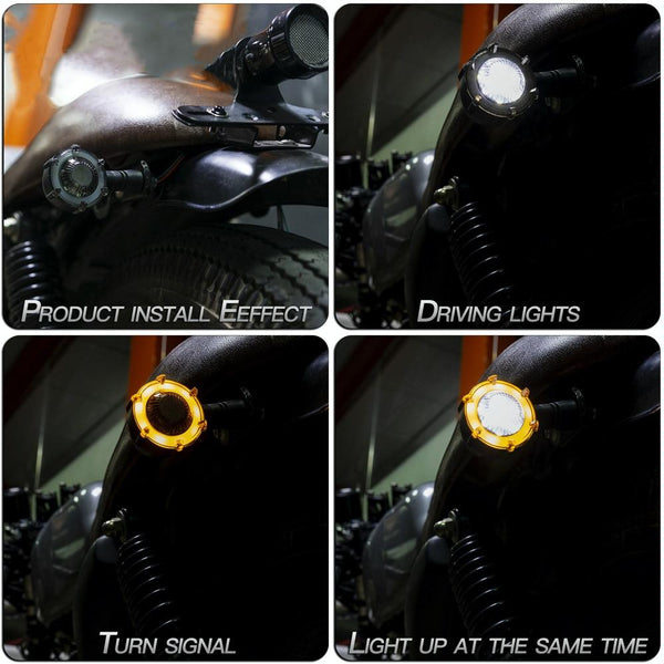 2 PCS PE-ZSD-174 Motorcycle Flashing Rotation Mode LED Two-color Modified Round Turn Signal Light(Yellow + White Light)