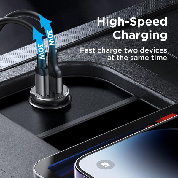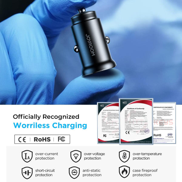 JOYROOM JR-CCN06 30W Dual PD Type-C Mini Metal Car Charger(Black)