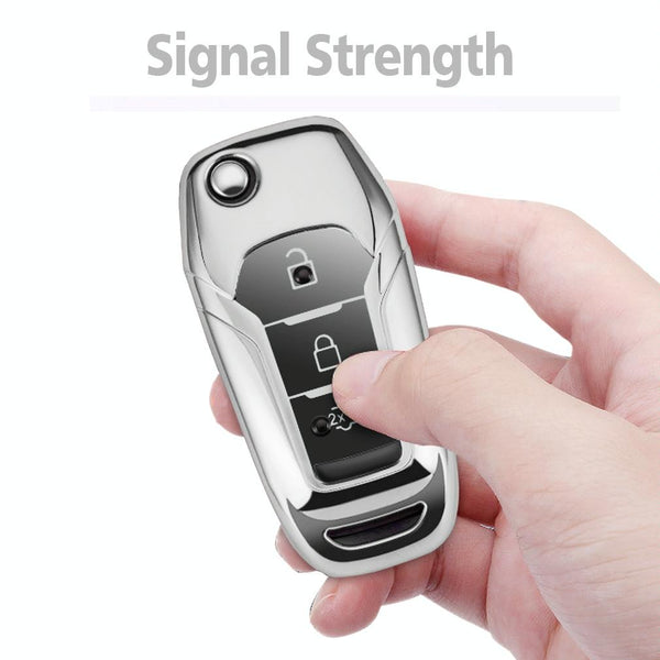 TPU One-piece Electroplating Opening Full Coverage Car Key Case with Key Ring for Ford Edge / ESCORT / KUGA / Mondeo / EcoSport / FOCUS (Silver)