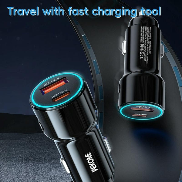 WEKOME WP-C49 Pop Digital Series USB, USB-C / Type-C 63W Fast Car Charger(Tarnish)