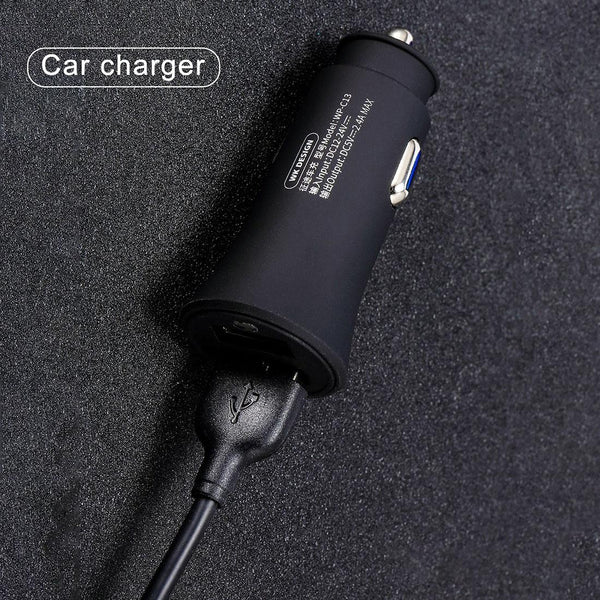 WK WP-C13 2.4A Warpath Dual USB Car Charger with USB to 8 Pin / Micro USB / Type-C Data Cable (White)